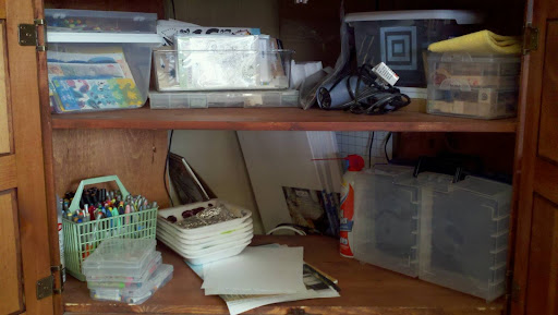 I can't believe how much fit into this cabinet (a tv cabinet)! I was able to put just about all the art supplies I need into it! And because its a corner unit, I was even able to fit larger canvases and papers in the very back!